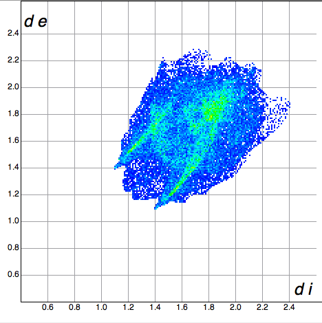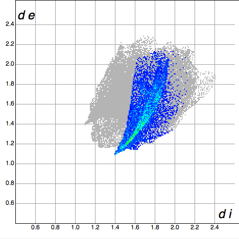 Filtered fingerprint plots2 are produced by applying a filter to highlight only close contacts between pairs of atoms of particular chemical elements. Only contributions from those contacts are shown in the fingerprint plot, with the rest greyed out.