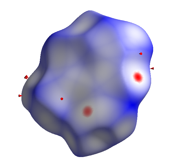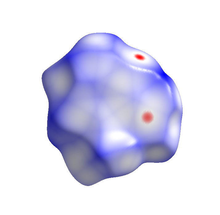 Highlight "cones" on Hirshfeld surface produced by clicking on the fingerprint plot.